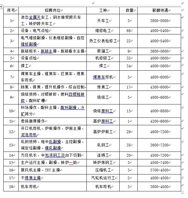酒鋼集團榆中鋼鐵有限責(zé)任公司現(xiàn)因生產(chǎn)需要,現(xiàn)面向社會公開招聘300名崗位操作人員,現(xiàn)將有關(guān)事宜通知如下: