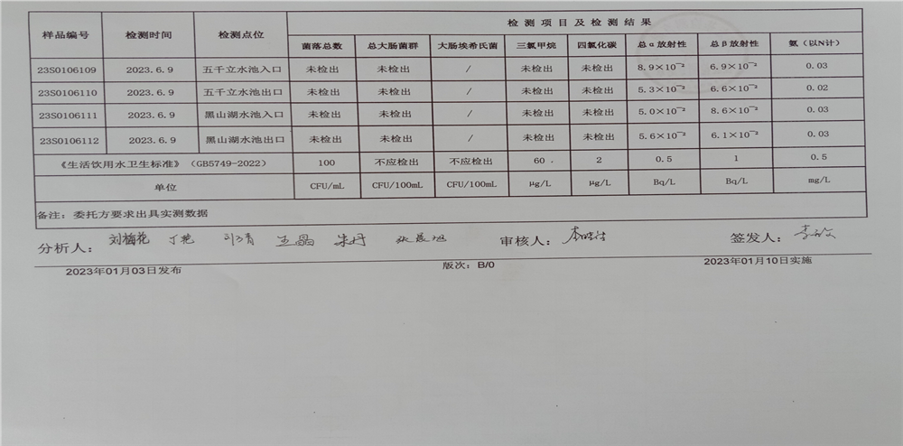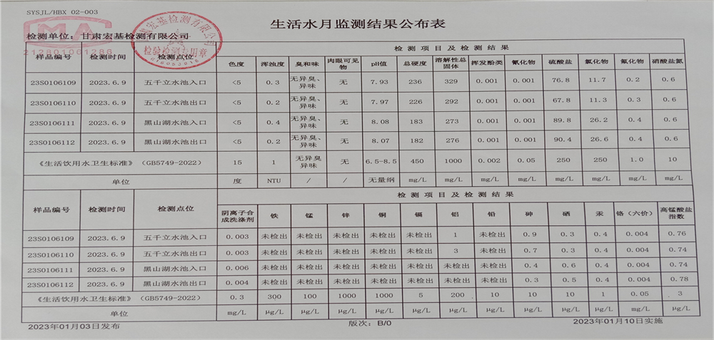 甘肅潤源環(huán)境資源科技有限公司水源地水質(zhì)2023年第二季度公示