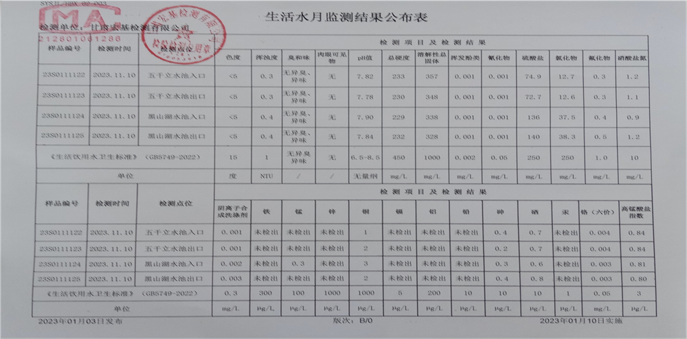 甘肅潤(rùn)源環(huán)境資源科技有限公司水源地水質(zhì)2023年第四季度公示