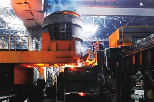 去年以來,宏興股份公司煉軋廠連鑄作業(yè)區(qū)大力開展科技攻關(guān)、崗位創(chuàng)新,在生產(chǎn)作業(yè)中實行“窄溫度、窄拉速”精細(xì)化控制,實現(xiàn)全年“零故障、零事故”目標(biāo)。圖為該作業(yè)區(qū)1號連鑄機生產(chǎn)現(xiàn)場。 肖世強攝